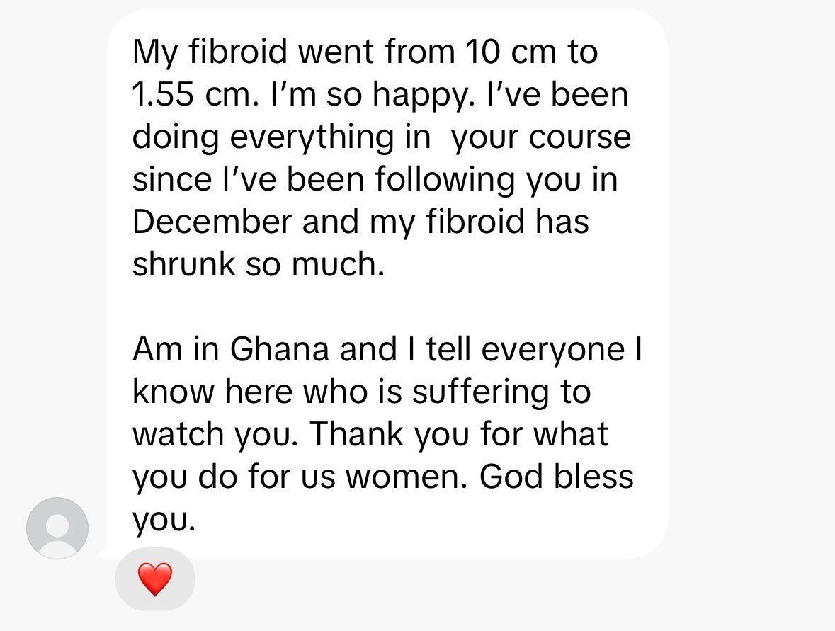 I was also able to shrink my fibroids in just 5 months, thanks to your guidance. I am so happy I was able to find you and the supportive community, because of all that I learned. I’ve even lost all my baby weight. I gained 44 pounds during pregnancy and lost it all within 6 months! I was also able to breast feed my baby with no issues. Thank you again!