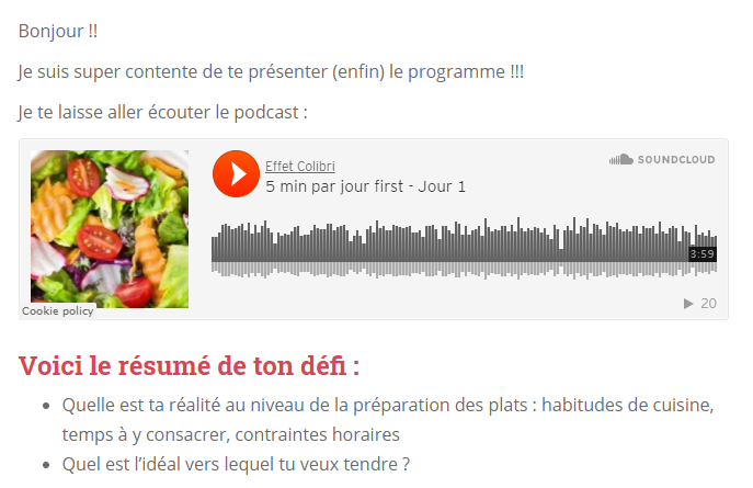 Tu reçois ton mail le matin avec ton lien vers ton podcast et le résumé du défi du jour !