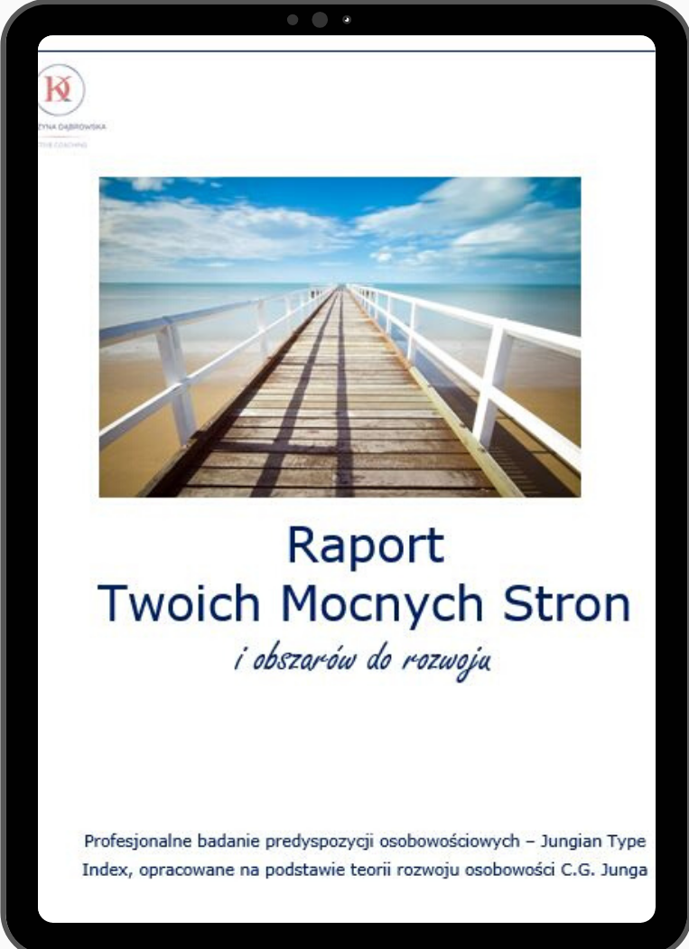 To profesjonalne badanie predyspozycji osobowościowych (znane jako MBTI lub JTI, oparte o teorię rozwoju osobowości wg. C.G. Junga). Test online składa się 56 par stwierdzeń, z których zawsze wybierasz jedno, które lepiej Ciebie opisuje. Otrzymujesz 20 stron Raportu Twoich Mocnych Stron i obszarów do rozwoju, w tym opis naturalnego (czyli najefektywniejszego) sposobu zarządzania ludźmi, komunikacji, rozwiązywania problemów, reakcji na stres, efektywnej nauki. |