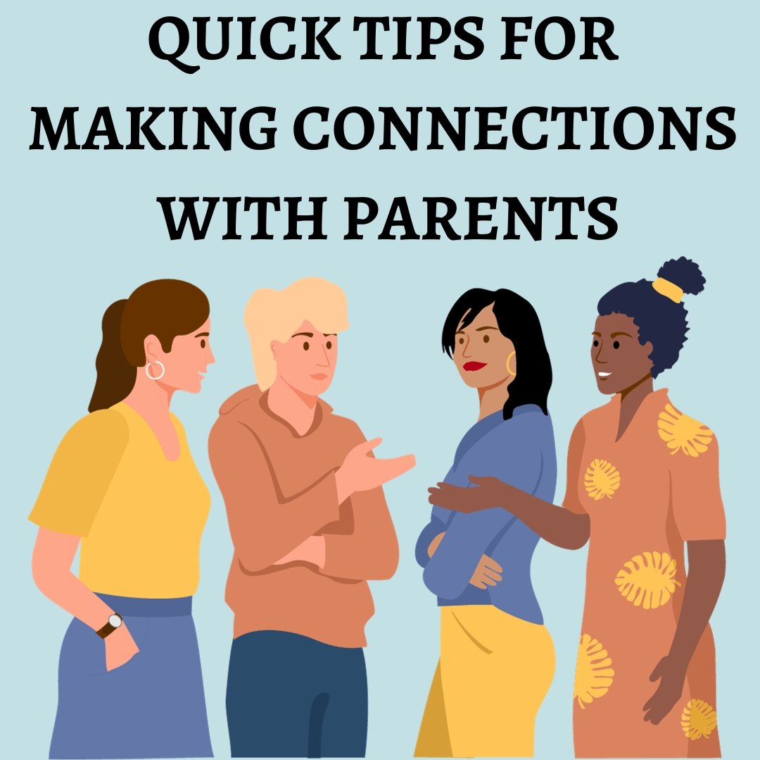 ASK PARENTS ABOUT THEIR DAY. It's a nice way to learn about what parents do; are they students, working full time, job hunting. The knowledge will help you make connections between parents too.