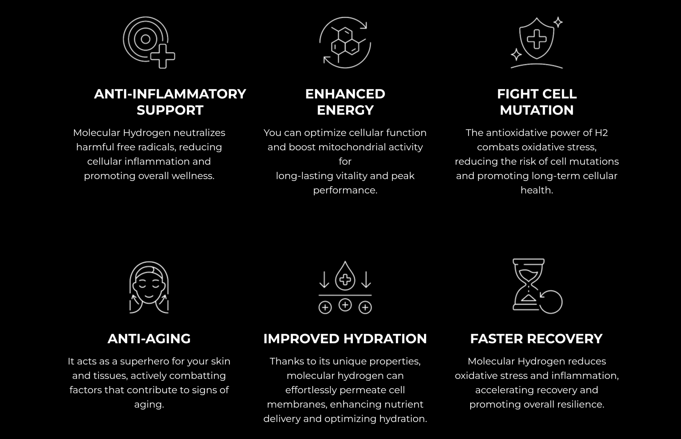 The Axiom H2 is a Hydrogen generator, designed to optimise our health, recovery, and performance on a cellular level. This machine offers a plethora of study-backed benefits, ranging from immune system health, inflammatory markers reduction, and cardiovascular health, to weight mangement, skin health, and brain & heart protection.