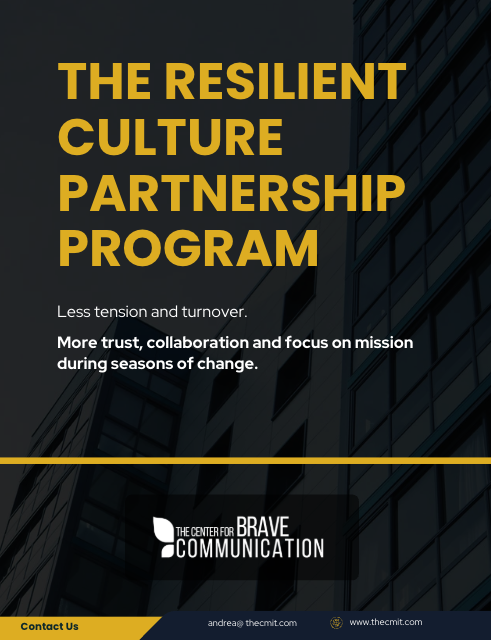 Check your email for the Resilient Culture Partnership Program Info Doc. If you didn't receive it, check your spam folder or reach out to logistics@thecmit.com