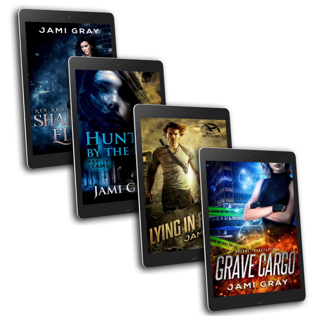 Jami Gray is the coffee addicted, music junkie, Queen Nerd of her personal Geek Squad, Alpha Mom of the Fur Minxes, who writes to soothe the voices crammed in her head. Her series combine high-stakes urban fantasy and edgy paranormal romantic suspense into books you don’t want to put down. Buckle up and get ready for a wild ride through the fascinating worlds of the Arcane, the Kyn, the PSY-IV Teams, and the Collapse.