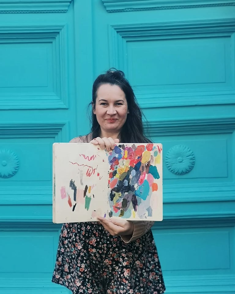 Ania Zajda - swoją artystyczną drogę zaczęłam od Liceum Plastycznego w Nowym Wiśniczu na profilu ceramicznym. Następnie ukończyłam studia na kierunku Edukacji artystycznej krakowskiego Uniwersytetu Pedagogicznego. Przez około 10 lat pracowałam w różnych muzeach tworząc i koordynując warsztaty dla dzieci i dorosłych. Współtworzyłam strefy edukacji do wystaw czasowych w Łazienkach Królewskich takie jak między innymi: "Idź na żywioł!" czy "O-powiadaj! Japonia w pięciu opowieściach" Od około 3 lat tworzę ścieżkę własnej twórczości, w której główną inspiracją jest natura i malarstwo innych artystów i artystek. Nieustannie poszukuje nowych rozwiązań, eksperymentuję z tworzeniem obrazów i inspiruję innych do działania ze sztuką i rozwijania wizualnej wyobraźni.