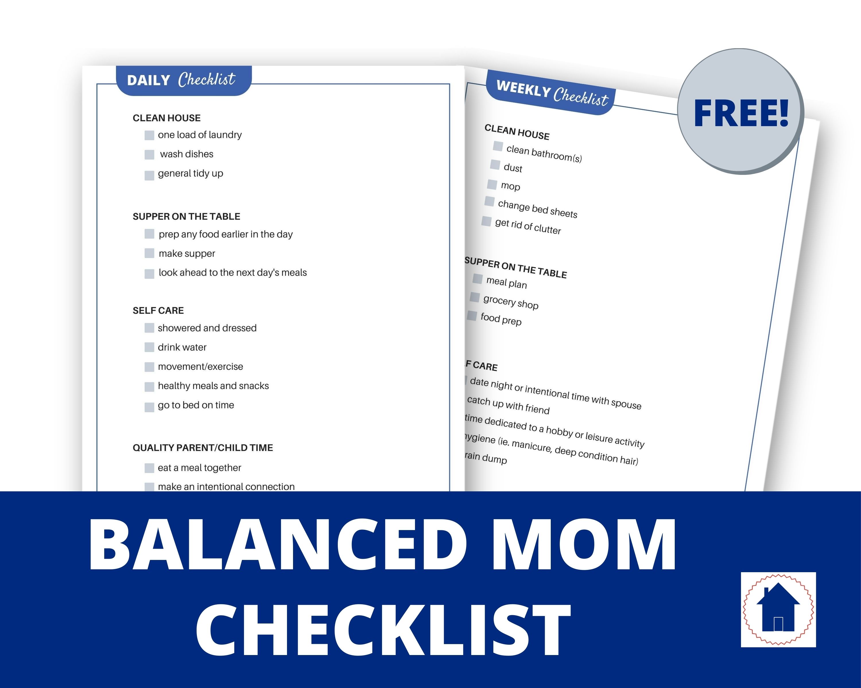 Have a clean house, supper on the table and time for your family with the free Balanced Mom Checklist for stay at home moms.