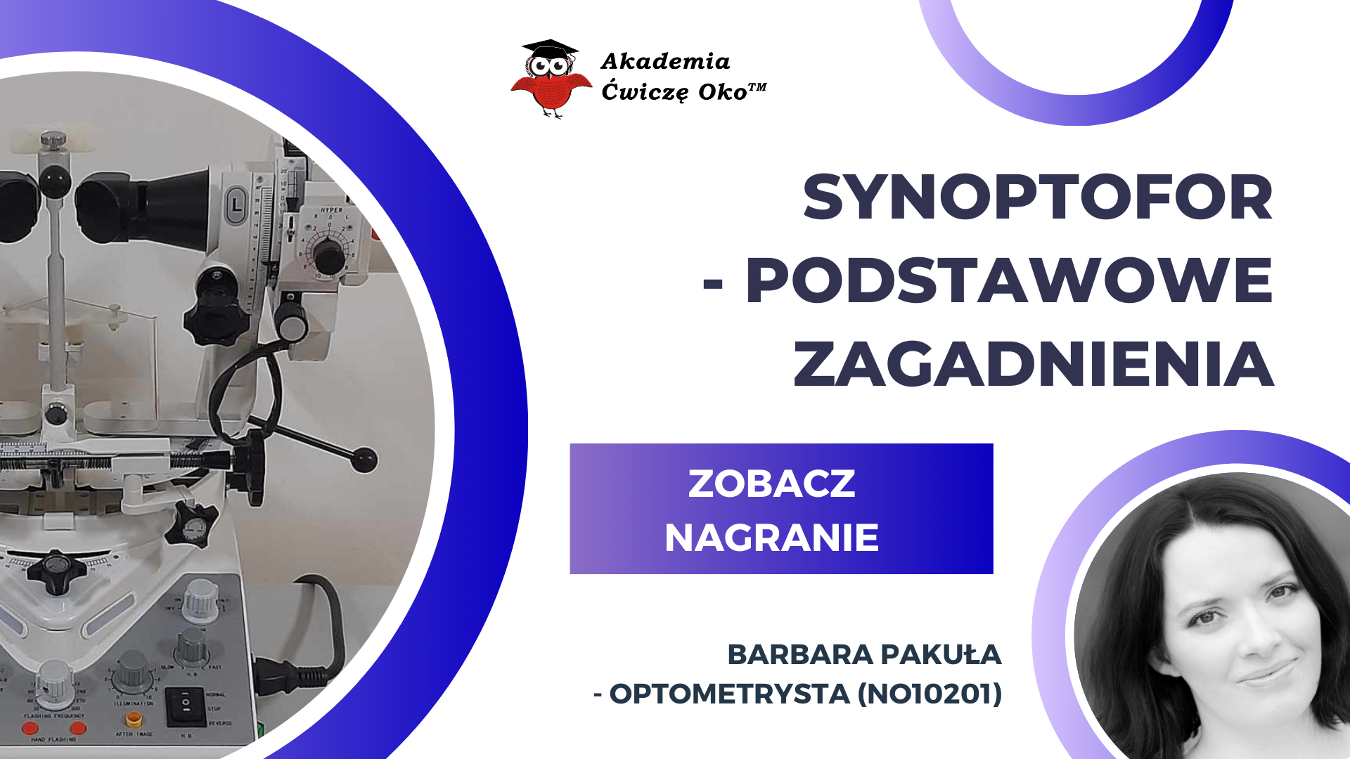 Nazywam się Barbara Pakuła - jestem optometrystą, kontaktologiem i terapeutą widzenia (NO 12232, 10201).