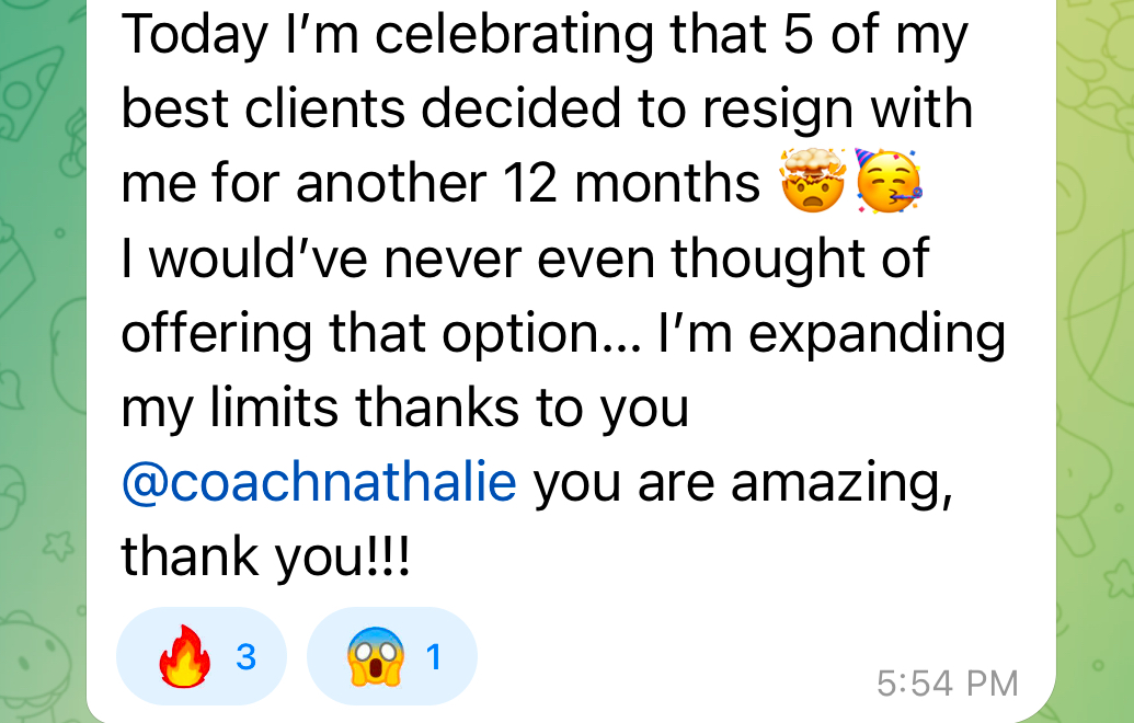 My name is Nathalie, and I'm a High Caliber Positioning and Leadership Mentor. I help extraordinary coaches and experts fill their premium offers with high-caliber clients and turn multiple 5 figure monthly recurring revenue into the standard. I'm a mom, a beach lover, and a creative entrepreneur since I was 14.