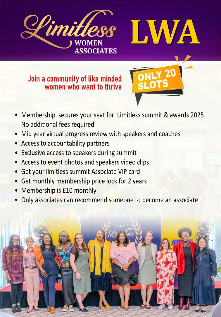 N.B.: Please note that a full twelve-month payment is required before the next Limitless Women's Summit in August 2025. If this hasn’t been completed by August 2025, the outstanding balance will need to be paid to secure your spot for the event.